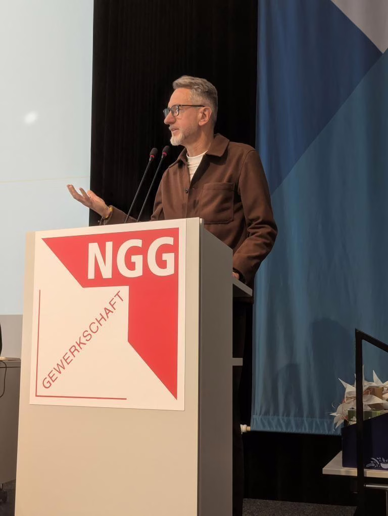 Er würdigte den Einsatz der NGG-Mitglieder, die in Gastronomie, Lebensmittelproduktion und Hotellerie dafür sorgen, dass unser Land funktioniert, und betonte die gemeinsamen Ziele von Grünen und Gewerkschaften: faire Löhne, sichere Arbeitsbedingungen und soziale Gerechtigkeit.